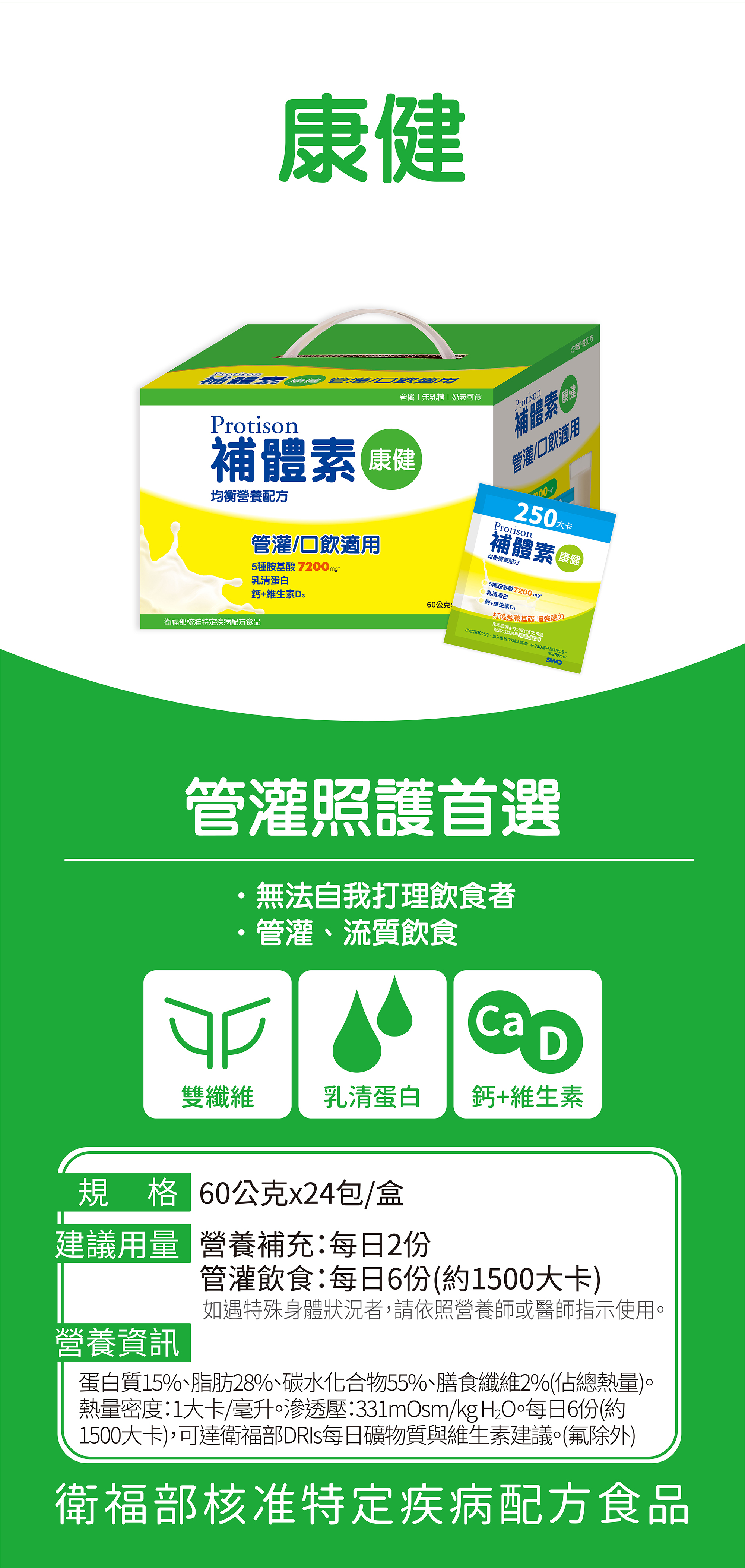 ●營養密度:1大卡/毫升,滲透壓:331mOsm/kg H2O