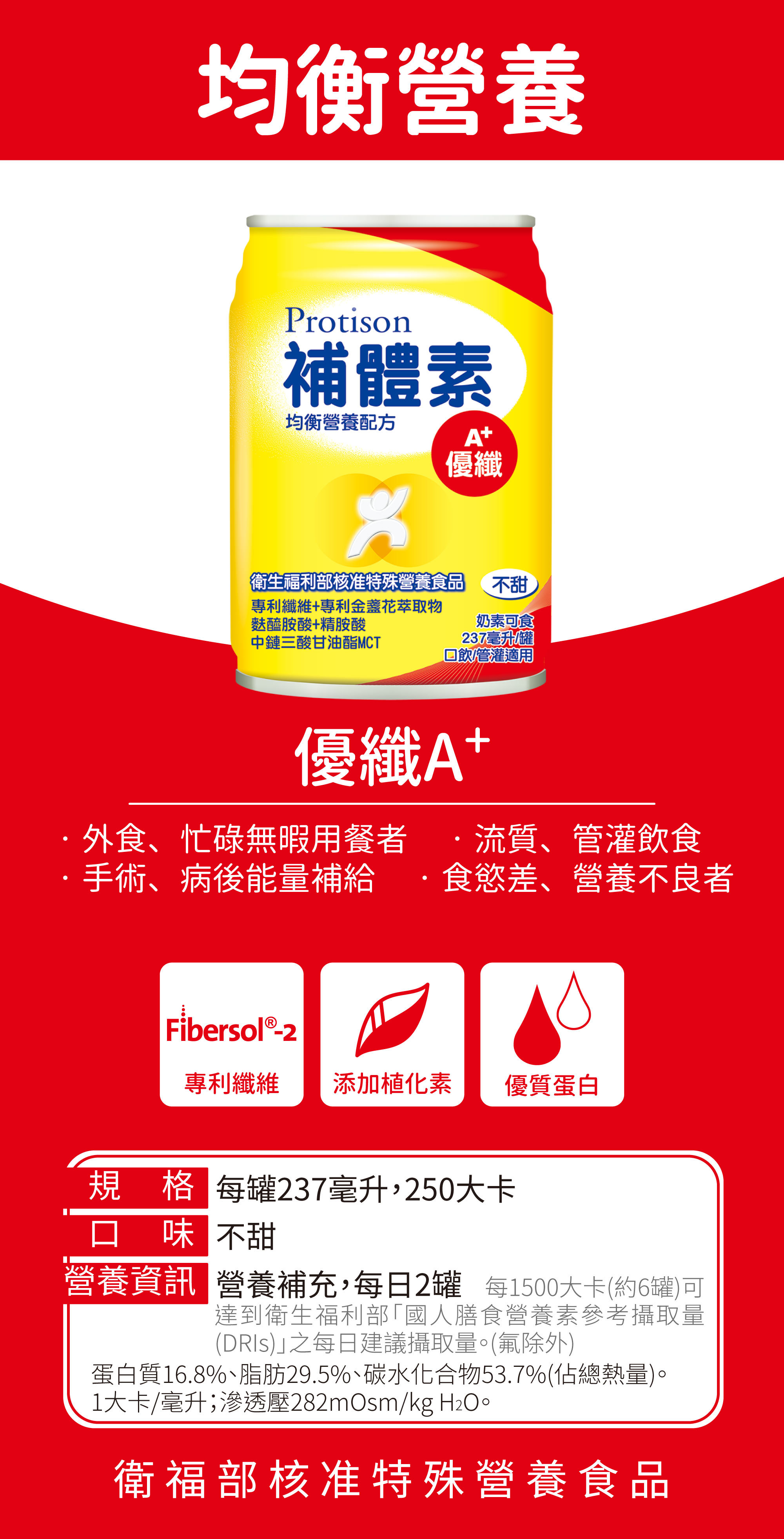 ●營養密度:1大卡/毫升;滲透壓:282mOsm/kg H2O
